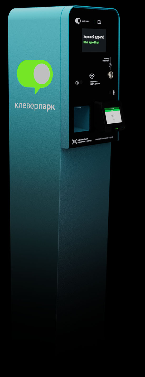 Стойки выезда предназначены для проверки оплаты и учёта посетителей, покидающих парковку. В случае, если парковка не оплачена, клиент информируется о необходимости оплаты. В зависимости от комплектации системы выезд происходит по билету, клиентской смарт-карте, регистрационному номеру автомобиля или RFID-метке. Также на стойке выезда можно оплатить парковку банковской картой.